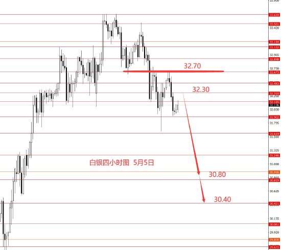 白銀上周正如預(yù)期向下運(yùn)行,周圖收陰柱。從圖形來(lái)看,后市延用之前框架思路,33.20和33.50區(qū)域?yàn)椴ǘ无D(zhuǎn)折點(diǎn),后市看空至30.80和30.40。本周上方關(guān)注32.70強(qiáng)阻力,以下還是看空,之前的框架思路點(diǎn)位仍可延用,操作建議:32.30附近做空,止損32.80,目標(biāo)看向30.80和30.40區(qū)域??刂苽}(cāng)量,嚴(yán)格止損。
