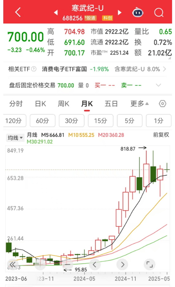 寒武紀(jì)-U獲機(jī)構(gòu)凈買入5460.2萬元,居首。公司今年一季度實(shí)現(xiàn)營收11.11億元,同比增長42.3倍;實(shí)現(xiàn)歸母凈利潤3.55億元,同比扭虧為盈,4月以來股價(jià)累計(jì)上漲12.36%。
