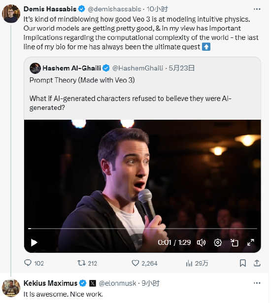 馬斯克稱贊谷歌新一代AI視頻生成模型Veo 3