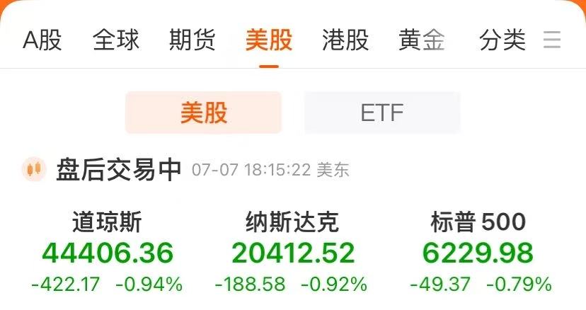 美東時(shí)間周一(7月7日),美股三大指數(shù)集體下跌,截至收盤,道指跌0.94%,納指跌0.92%,標(biāo)普500指數(shù)跌0.79%。