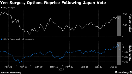 日元上漲逾1%,美元/日元一度跌至147.08日元;之前自民黨執(zhí)政聯(lián)盟在參議院選舉中遭遇歷史性失利。