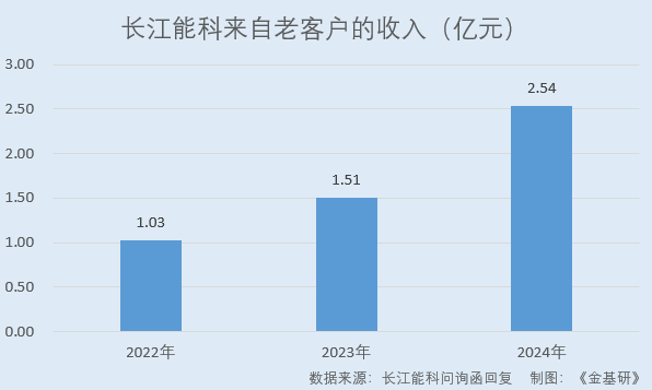 據(jù)長(zhǎng)江能科問詢函回復(fù),2022-2024年,長(zhǎng)江能科主營(yíng)業(yè)務(wù)收入中來(lái)自老客戶的收入分別為1.03億元、1.51億元、2.54億元,占比分別為47.34%、44.01%、81.49%。