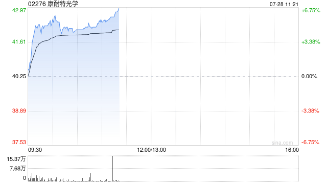 康耐特光學(xué)(02276)早盤股價上漲5.84%,現(xiàn)報42.60港元,成交額4297.91萬港元。