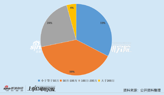 從薪酬分布看,A股石油石化上市公司CFO年薪處于50萬以下、50萬-100萬、100萬-200萬、200萬以上各區(qū)間的人數(shù)分別為16人、18人、11人、2人,占比分別為33%、39%、24%、4%。