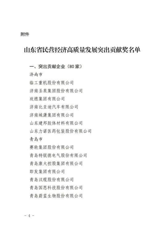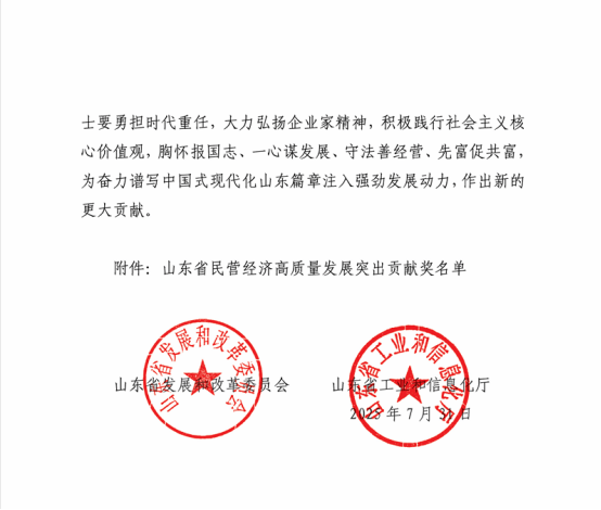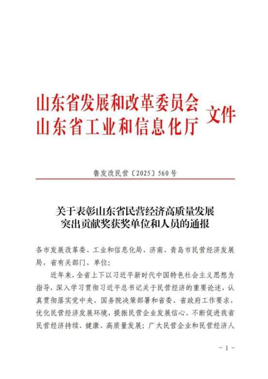 近日,山東省發(fā)展改革委、省工業(yè)和信息化廳公布山東省民營經(jīng)濟高質(zhì)量發(fā)展突出貢獻獎名單,以激發(fā)民營企業(yè)發(fā)展活力,提振民營企業(yè)發(fā)展信心,推動全省民營經(jīng)濟高質(zhì)量發(fā)展再上新臺階。
