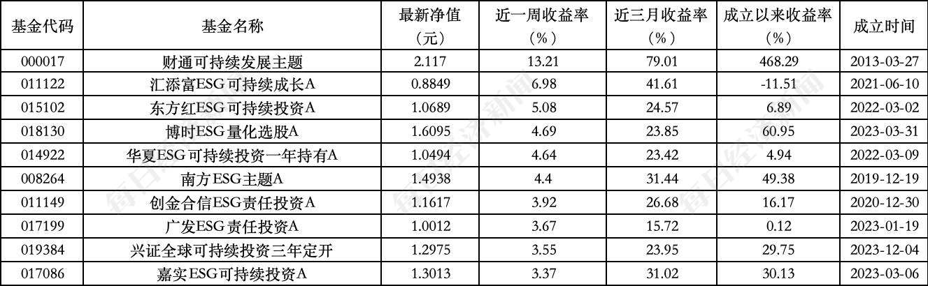 ESG公募基金周榜第95期丨上榜基金連續(xù)收漲,泛ESG主題收益率全面領先