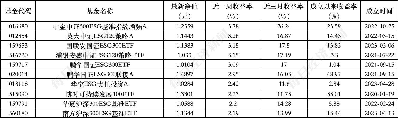 ESG主題指數(shù)型基金收益率周榜TOP10