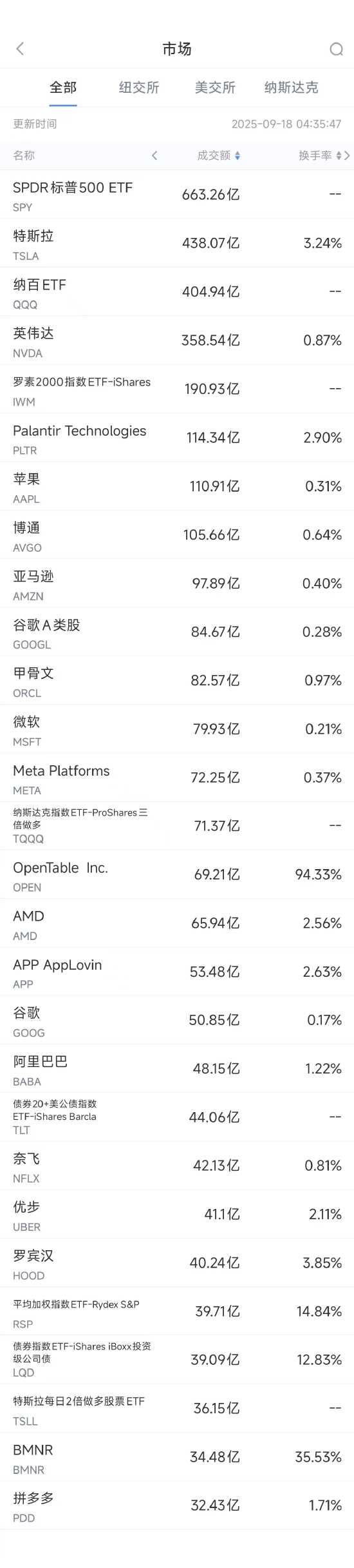 9月17日美股成交額前20:阿里巴巴股價創(chuàng)4年新高
