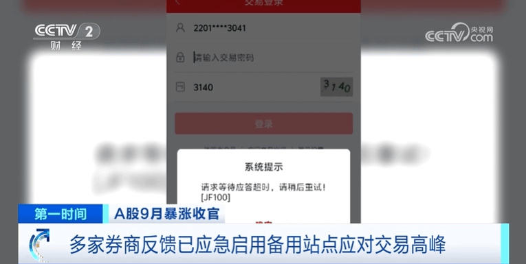 9月30日由于A股市場行情火熱,交易量激增,部分券商App早上出現(xiàn)局部登錄、交易緩慢情況。對此,多家券商反饋稱,已應(yīng)急啟動備用站點(diǎn)用以交易,確保備用站點(diǎn)的資源和性能能夠滿足當(dāng)前的需求。記者多次致電相關(guān)券商人工 *** ,均處于忙線中。