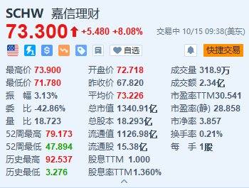 美股異動(dòng)丨嘉信理財(cái)漲超8% Q3凈營(yíng)收及調(diào)整后每股收益超預(yù)期
