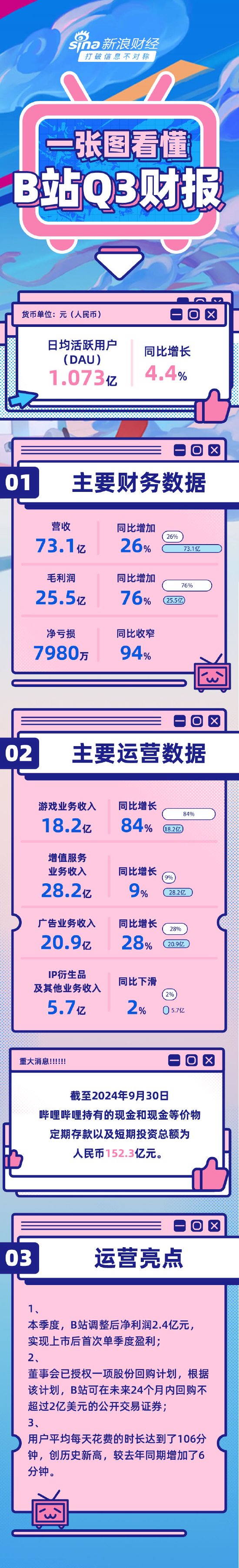 看圖:B站第三季度營收73.1億元 實現上市后首次單季度盈利