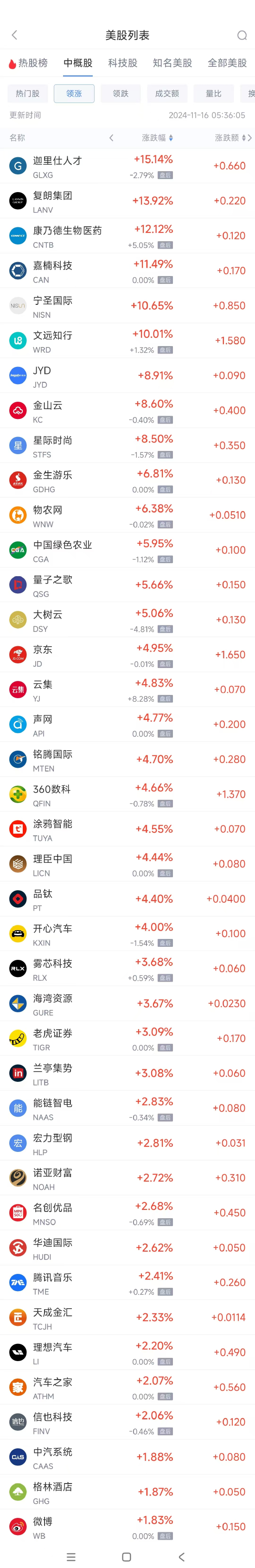 上漲股當(dāng)中(按市值降序排列),拼多多漲1.49%,網(wǎng)易漲1.51%,京東漲4.95%,百度漲0.62%,中華電信漲0.67%,理想汽車漲2.20%,貝殼漲0.83%,騰訊音樂漲2.41%,中通漲0.72%,富途控股漲0.45%,小鵬汽車漲0.87%,華住酒店集團(tuán)漲1.27%,蔚來漲1.35%,新東方漲1.54%,滿幫漲0.85%,WSP控股漲0.10%,名創(chuàng)優(yōu)品漲2.68%,文遠(yuǎn)知行漲10.01%,360數(shù)科漲4.66%,汽車之家漲2.07%。