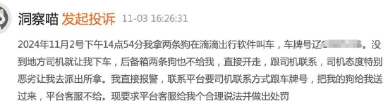 滴滴司機結(jié)束訂單后帶著乘客的狗跑了,乘客報警后送回,滴滴:賠50