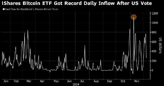 自特朗普當(dāng)選以來 美國比特幣ETF流入近100億美元