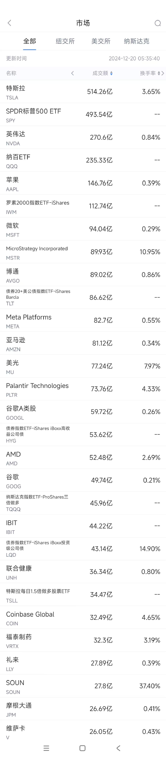 12月20日美股成交額前20:Palantir獲瑞銀看好,股價大漲8.5%