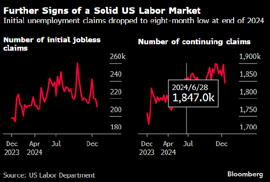 美國(guó)2024年末首次申領(lǐng)失業(yè)金人數(shù)創(chuàng)八個(gè)月低點(diǎn),顯示裁員數(shù)相對(duì)溫和,勞動(dòng)力市場(chǎng)意外保持堅(jiān)韌。