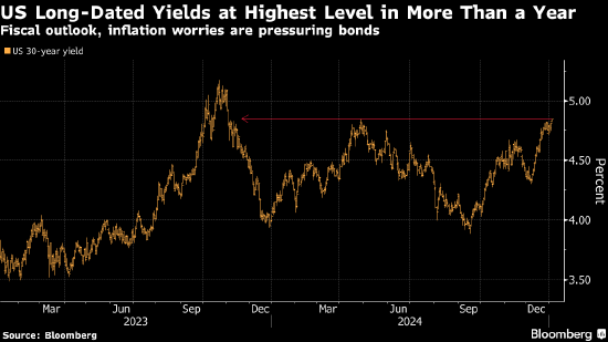30年期美債收益率觸及14個月高點 受特朗普關稅報道及擴容壓力影響