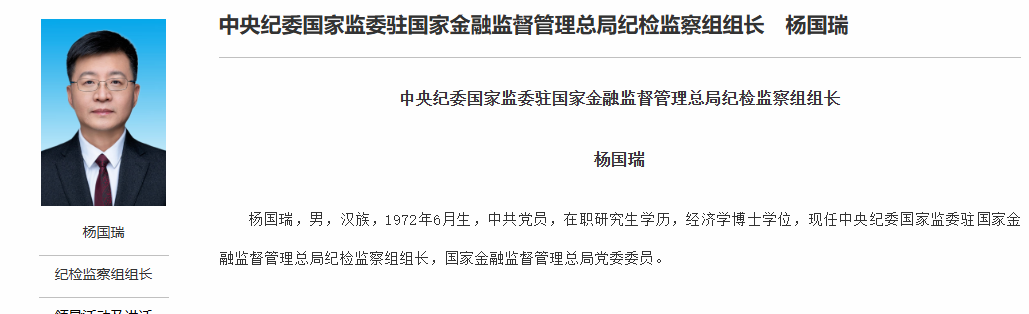 楊國(guó)瑞已任國(guó)家金融監(jiān)督管理總局黨委委員