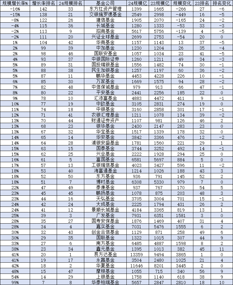 附2024大中型基金公司規(guī)模變化: