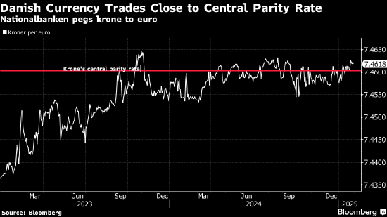 丹麥央行將基準(zhǔn)利率下調(diào)25個(gè)基點(diǎn),與歐洲央行動(dòng)作一致,以維護(hù)丹麥克朗盯住歐元的匯率制度。