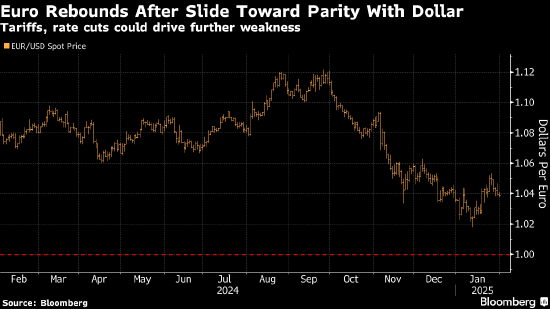 “本周的央行會(huì)議證實(shí)了政策的分化,”摩根大通私人銀行全球市場(chǎng)策略師Matthew Landon表示。他說,關(guān)稅可能進(jìn)一步擴(kuò)大分歧,“使得歐元/美元平價(jià)的可能性重回視野”。