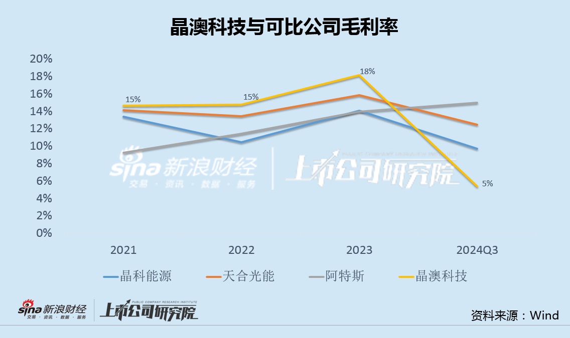 事實(shí)上,除計(jì)提減值的因素外,晶澳科技盈利能力大幅下降,是業(yè)績(jī)表現(xiàn)不佳的根本原因,公司毛利率從此前的行業(yè)領(lǐng)先,驟降至墊底。