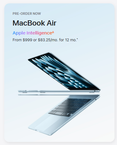 蘋果推出M4芯片版MacBook Air 起售價999美元