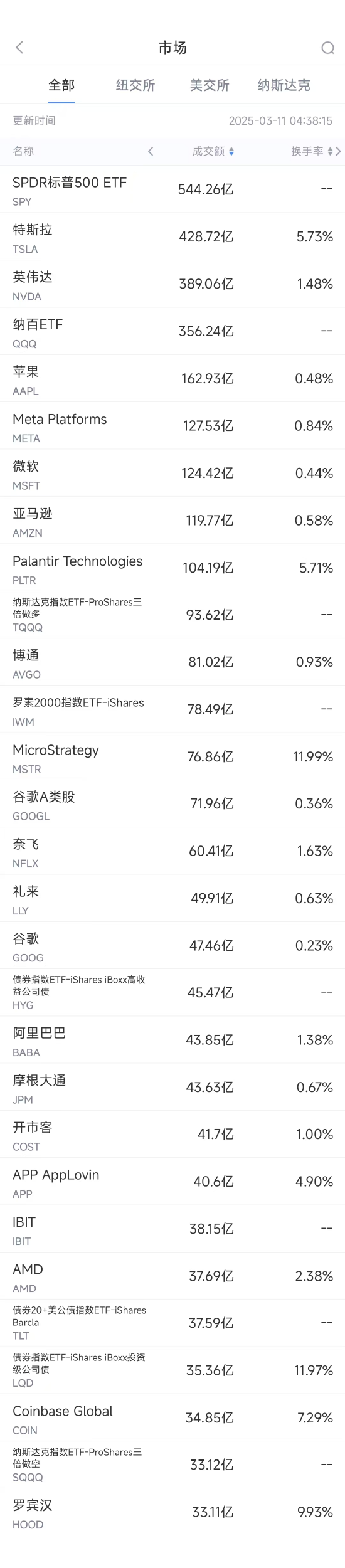 第17名Applovin收跌11.98%,成交40.6億美元。因未能入選最新標(biāo)普500指數(shù)調(diào)整名單,Coinbase和Applovin股價(jià)大幅下跌。此前這兩家公司均被視作熱門(mén)候選。
