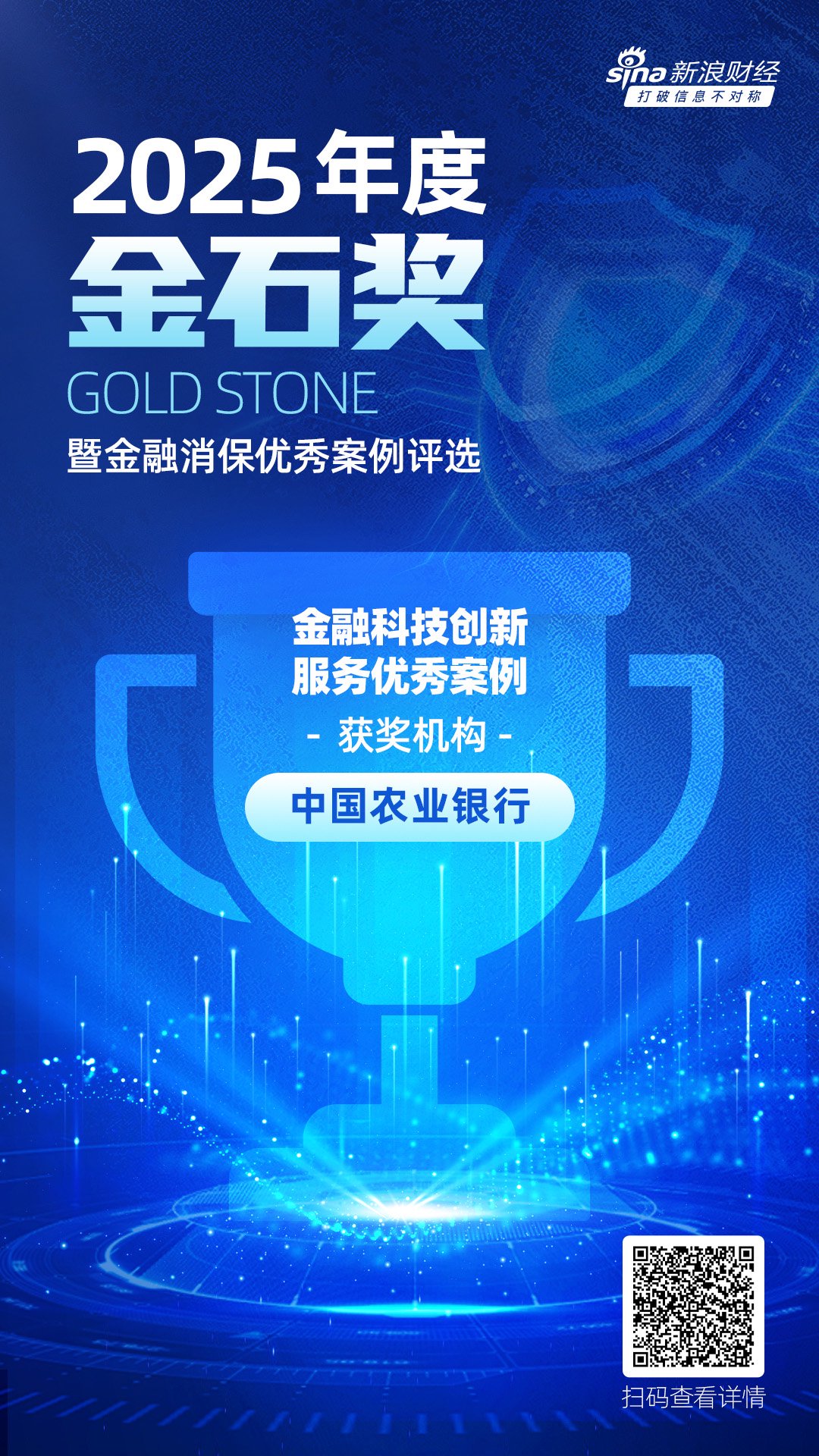 由新浪財經(jīng)主辦的“2025年度金石獎暨金融消保優(yōu)秀案例評選”活動評選結(jié)果出爐,本期推出金融科技創(chuàng)新服務(wù)優(yōu)秀案例。在多家金融機構(gòu)角逐中,中國農(nóng)業(yè)銀行脫穎而出,憑借報送的“‘金穗養(yǎng)老’數(shù)字服務(wù)工程——以科技之翼守護消費者安心”案例,榮獲“金融科技創(chuàng)新服務(wù)優(yōu)秀案例”獎項。