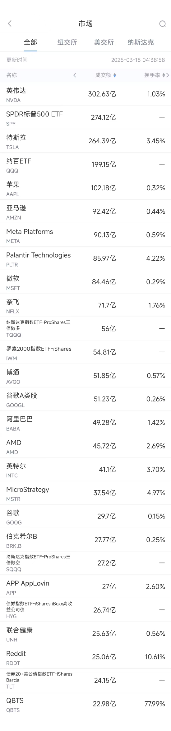 周一美股成交額第1名英偉達(dá)收跌1.76%,成交302.63億美元。英偉達(dá)將于當(dāng)?shù)貢r(shí)間3月17日至21日舉辦年度技術(shù)盛會(huì)GTC2025。據(jù)了解,本屆大會(huì)不僅聚焦量子計(jì)算,還將發(fā)布新一代BlackwellB300系列芯片,并預(yù)告2026年推出的RubinGPU架構(gòu)。