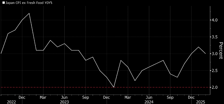 日本內(nèi)務(wù)省周五公布,不包括能源、生鮮食品的消費者價格(CPI)同比上漲2.6%,符合預(yù)估。在 *** 補貼恢復(fù)降低公用事業(yè)成本之后,日本消費通脹四個月來首次放緩,這一結(jié)果支持了日本央行繼續(xù)逐步加息的理由。日的數(shù)據(jù)顯示,2月份不包括生鮮食品的消費者價格指數(shù)同比增長3.0%,增速低于1月的3.2%。經(jīng)濟學(xué)家此前預(yù)期為增長2.9%??傮w通貨膨脹也有所放緩,從前月的4%下滑至3.7%。該數(shù)據(jù)與東京的通脹報告基本一致,后者顯示能源補貼導(dǎo)致通脹放緩。關(guān)鍵價格指標連續(xù)第35個月保持在或高于日本央行2%的目標水平。