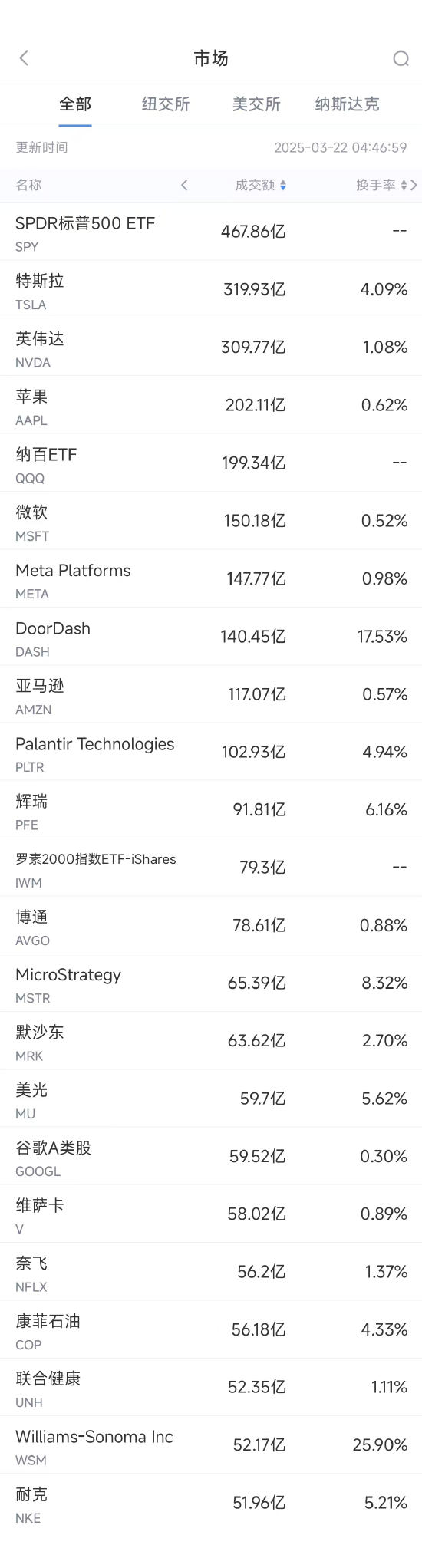 3月21日美股成交額前20:特斯拉連續(xù)第九周下跌