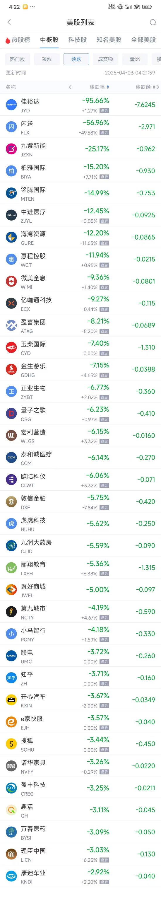 領(lǐng)跌中概股列表: