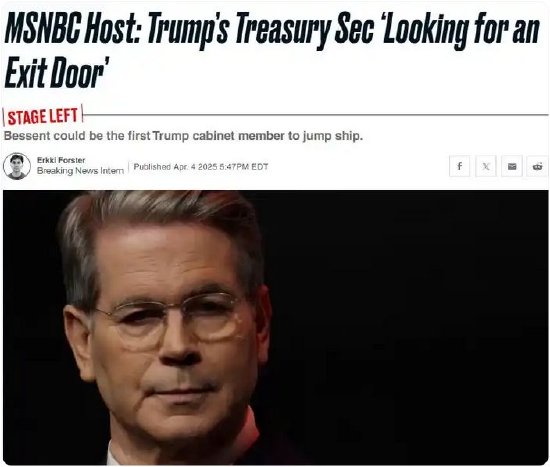 “對(duì)等關(guān)稅”太荒謬!美媒曝美財(cái)長(zhǎng)受不了想辭職